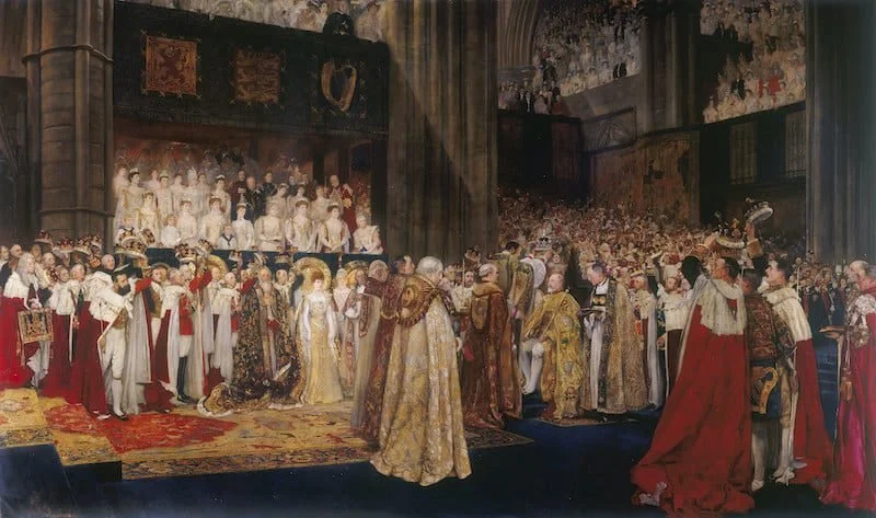 In celebration of HRH King Charles III & Queen Consort Camilla we are taking a deep dive into the historical coronations at Westminster Abbey. Of course our focus starts on the floor. It all began with a paradise garden carpet woven in 1520 & borrowed for Queen Victoria’s son King Edward VII’s coronation in 1902 along with the Holms Hepburn carpet that was woven in the 17th century.
