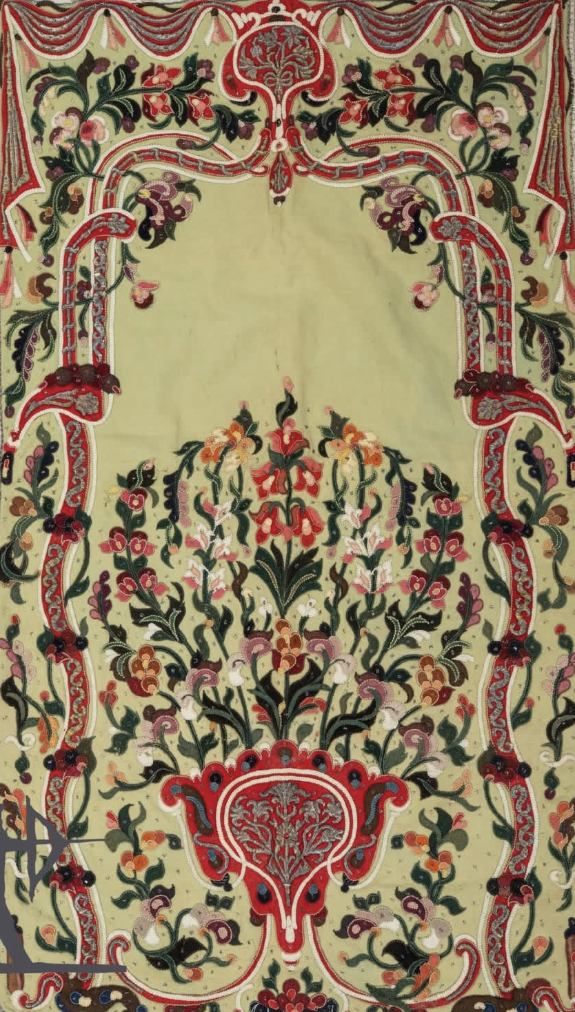 Carnations symbolize love, devotion, and admiration. They represent the beauty of nature. Carnations are often found in prayer rugs. When depicted inside a niche they represent the Tree of Life, as found in the Garden of Eden.